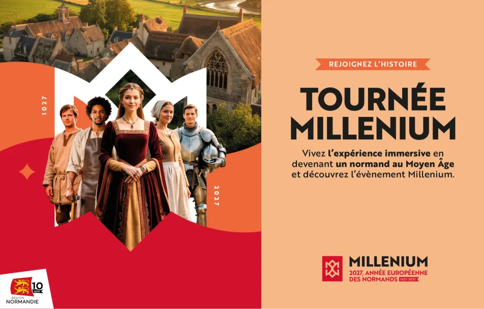 À l’approche des célébrations du Millénaire, les Normands sont conviés, d'avril à octobre, à une expérience immersive inédite au cœur des événements médiévaux de la Région. De Harfleur au Mont-Saint-Michel, un dispositif itinérant sillonnera la Normandie.